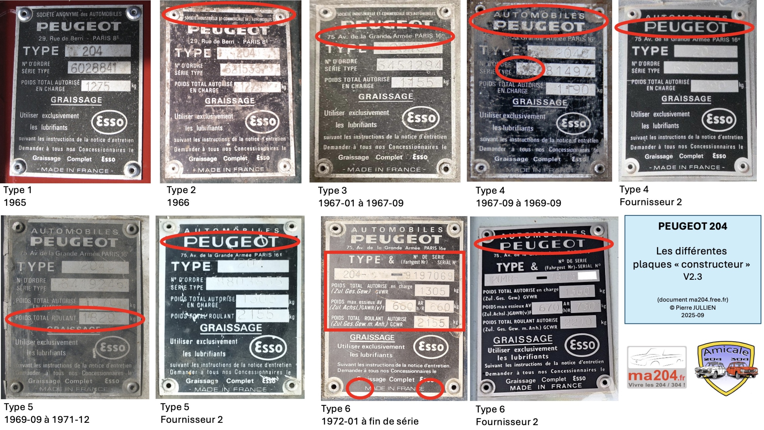 Voici tous les types de plaque constructeur sur Peugeot 204