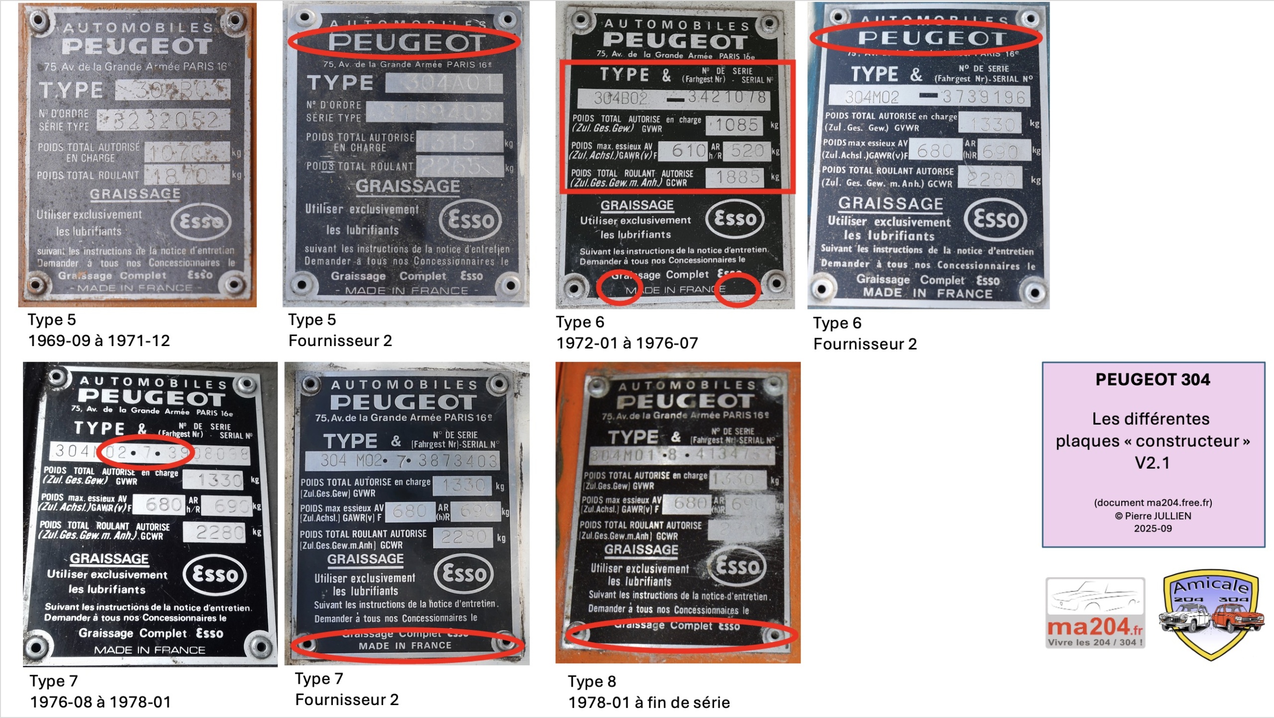 Voici tous les types de plaque constructeur sur Peugeot 304